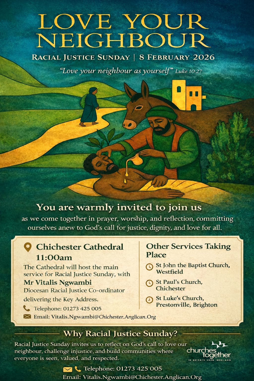 The Cathedral will be hosting the main service at 11:00am with our Racial Justice Co-ordinator, Mr Vitalis Ngwambi, giving the key address. Other key services will also be held in the following churches: